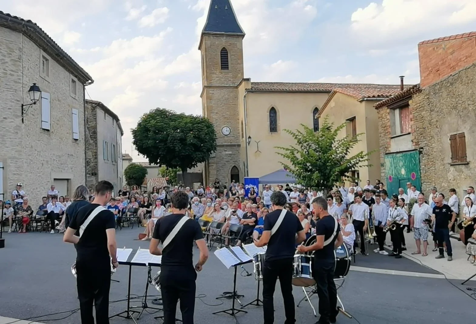 Hommage au petit tambour de Tourreilles, une création originale composée par Gilles Arcens, interprétée par la Lyre de Limoux, Régis Goudot (comédien) et les tambours de Percu’Sud.